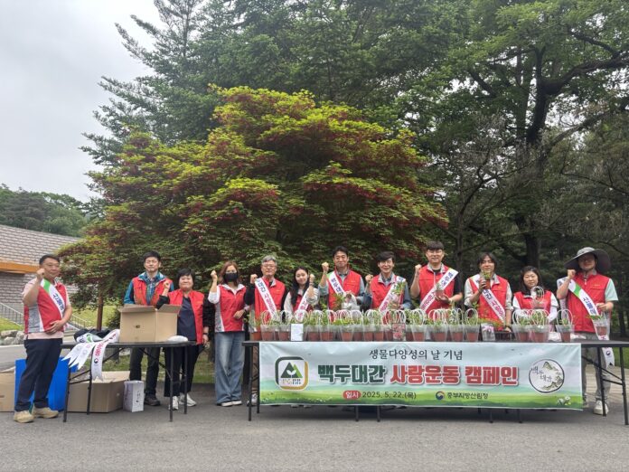 중부지방산림청(청장 안병기)은 5월 22일 세계 생물다양성의 날을 맞아 산림 생태계 보전의 중요성을 널리 알리고자 ‘백두대간 사랑운동’ 행사를 개최했다. 이번 행사에서는 백두대간 내 위치한 법주사 일대에서 자생식물인 홍지네고사리와 꽃나무 200점의 화분을 무료로 제공했다.